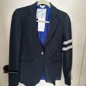 Navy blue with white stripe on left arm. Sosken from Frankie Shop, brand new with tags.size 0