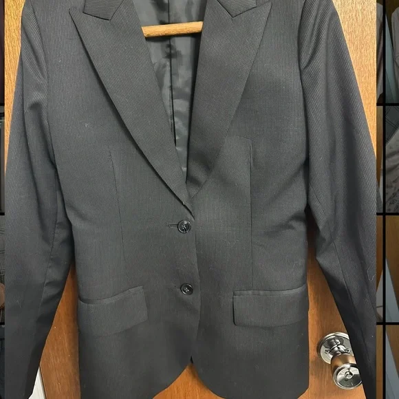 Thrifted black blazer with small pinstripes. Great cut and condition! Open to offers. Size is unknown but estimated to be a small
