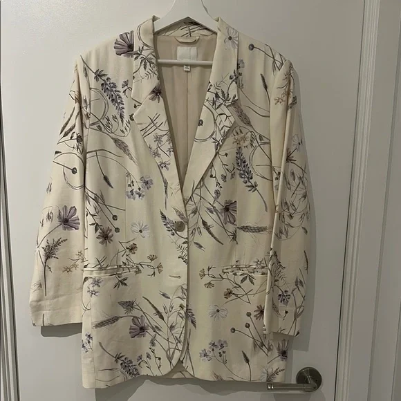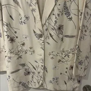 Elevate your style with this elegant cream blazer featuring a delicate floral pattern. Perfect for any occasion, this jacket adds a touch of sophistication to your wardrobe.