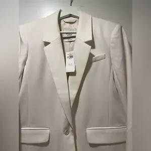 Chic off-white jacket from Zara. Ideal for professional settings.