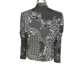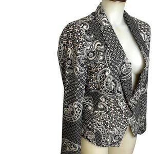 This blazer is in perfect condition, light shoulder pads sewn in to keep the shape, one button at front, inside chiffon lining.