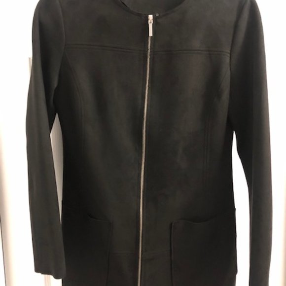 By ZARA. Black Faux-Suede. Size Medium. Sits at Hips. 2 Square Pockets. Never Worn.