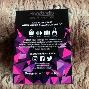 "The Crystal Collection features a secure catch which is easy to open & close and a steel hinge. It’s perfect for every size and shape makeup sponge and will fit two smaller sponges. Our compact design provides proper ventilation, a tough outer shell & antimicrobial protection to keep the case free from bacteria. Travel & protect your sponge and makeup bag from grime & bacteria, just Blend, Defend & Go."