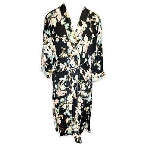 Bleuh Ciel Floral Boho Kimono Duster Jacket Black Floral Botanical US S