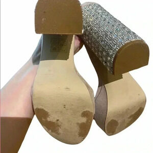 Chunky heel, no bling missing. Good condition, strappy pumps, perfect for an event, round toe, pinkish nude color