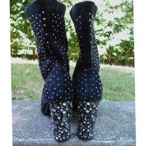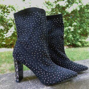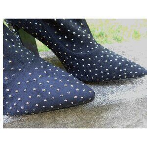 Bling crystal ankle boots - faux suede stretch back of heal has crystal design