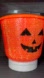 Bright orange bucket with a sparkling jack-o'-lantern face. Perfect for Halloween.