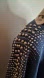 Stylish blue sweater featuring a blingy studded shoulder detail. Perfect for a chic look. could be off shoulder or not.