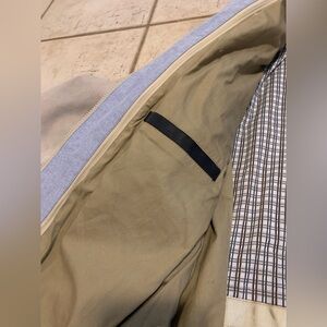 • Lining: Full lining with a brown and white plaid/check pattern. The lining is attached and features a separate inner zip closure, providing an extra layer for warmth.