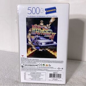 500-piece puzzle featuring Back to the Future II design. Includes iconic DeLorean image.