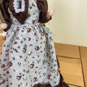Blonde Big Eye Doll Brown Calico Floral Prairie Bonnet & Dress 9" Vintage Korea