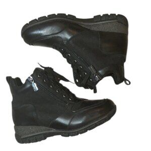 Blondo waterproof boots, women’s combat booties, black wool lined boots, snow boots, wide width leather boots, Canadian waterproof footwear, winter ankle boots, city rain boots, Blondo 7WW, weatherproof shoes