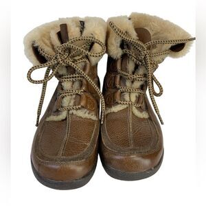 Very good condition with minor marks and scuffs. Size 9W. Lined in genuine shearling for warmth. Gorgeous boots. See photos for condition.