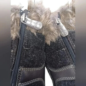 Black leather uppers with faux fur, these boots feature a side zip and lace closure.