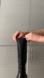 Wide Cafe knee high, 2" block heel, squared toe leather boots with extendable elasticated cafe panel in Black