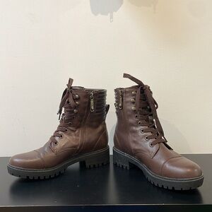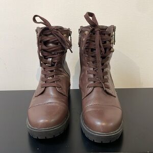 Blondo Women's Mady Combat Boot 6 waterproof laces doubble zipper brown leather