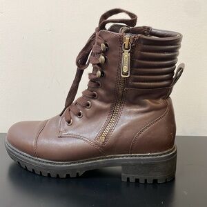 Blondo Women's Mady Combat Boot 6 waterproof laces doubble zipper brown leather