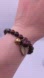 This elegant stretch bracelet features rich brown & red bloodstone beads and a vintage goldtone leaf charm, perfect for adding a touch of sophistication to any outfit.