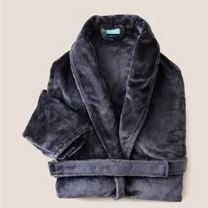 Luxurious dark gray plush robe. Soft and cozy for ultimate comfort.