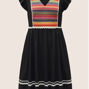 BloomChic Color Embroidered Patchwork Flounce Sleeve Dress XL us14-16