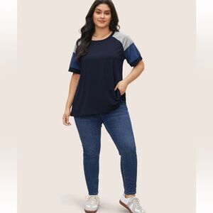 BloomChic Colorblock Contrast Crew Neck Raglan Sleeve T-shirt