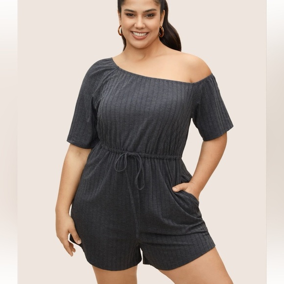 BloomChic Dolman Sleeve Asymmetrical Neck Drawstring Waist Short Rompers XL us14