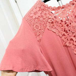 BloomChic Dressy Lace Round Neck Shirts Casual Short Sleeve Tunic Blouses