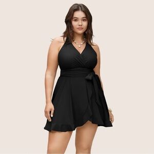 BloomChic Plain Ties Wrap Flutters Swim Dress