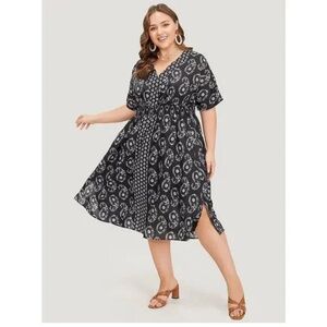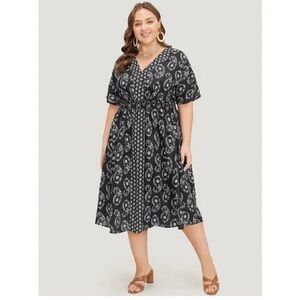 BloomChic Plus Size 2XL Bandana Print Pocket V Neck Dress us18-20