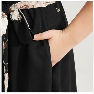BloomChic Plus Size 2XL Black Floral Printed Pocket Surplice Belted Midi Dress