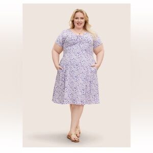 BloomChic Plus Size 2XL Ditsy Floral Elastic Waist Knot Drawstring Dress