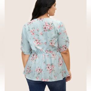 BloomChic Plus Size 2XL Floral Bishop Sleeve Wrap Gathered Blouse us18-20