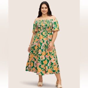 BloomChic Plus Size 2XL Floral Shirred Off Shoulder Flutter Sleeve Dress us18-20