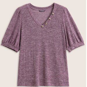 BloomChic Plus Size 2XL Heather Button Detail Puff Sleeve T-shirt us18-20