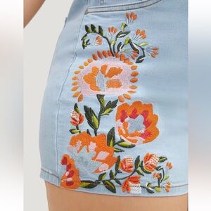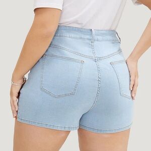 BloomChic Plus Size 2XL High Rise Light Wash Floral Embroidered Denim Shorts