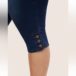 BloomChic Plus Size 2XL High stretch Dark Wash Button Hem Cropped Jeans us16