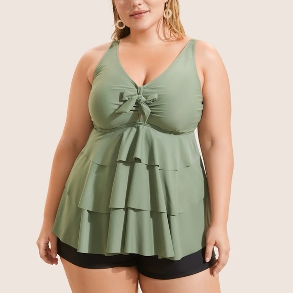 BloomChic Plus Size 2XL Knotted Front Ruffle Tiered Tankini Top us18-20