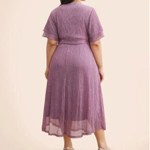 BloomChic Plus Size 2XL Plain V Neck Mesh Pocket Ruffle Tiered Belted Midi Dress