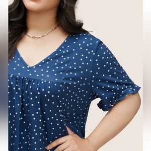 BloomChic Plus Size 2XL Polka Dot Print Gathered Frill Trim T-shirt us18-20