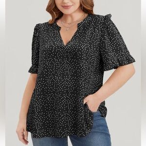 BloomChic Plus Size 2XL Polka Dot V Neck Ruffle Trim Blouse us18-20