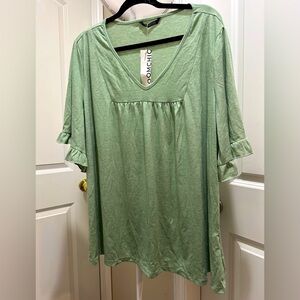 BloomChic Plus Size 2XL Solid Gathered Ruffle Trim Flounce Sleeve T-shirt us18