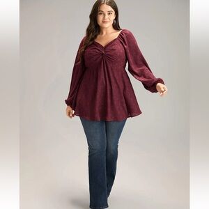 BloomChic Plus Size 2XL Solid Glitter Twist Front Gathered Blouse us18-20