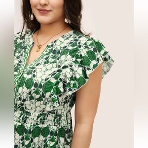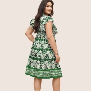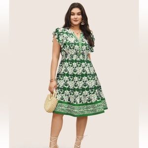 BloomChic Plus Size 3XL Boho Print Ruffles Shirred Pocket Elastic Waist Dress