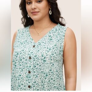 BloomChic Plus Size 3XL Ditsy Floral Sleeveless Button Detail Tank Top us22-24