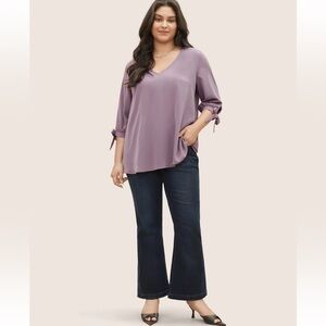 BloomChic Plus Size 3XL Plain Knotted Sleeve V Neck Blouse us22-24