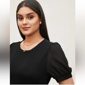 BloomChic Plus Size 3XL Solid Chiffon Patchwork Puff Sleeve T-shirt us22-24