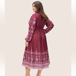 BloomChic Plus Size 4XL Bandana Print Shirred Elastic Cuffs Dress us26