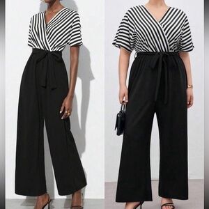 BloomChic Plus Size 4XL Black and White Striped Jumpsuit us26