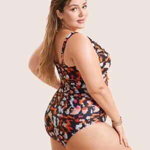BloomChic Plus Size 4XL Brush Print Ties Tassel One Piece Swimsuit us 26