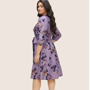 BloomChic Plus Size 4XL Floral Print Belted Pocket Frill Trim Dress us26